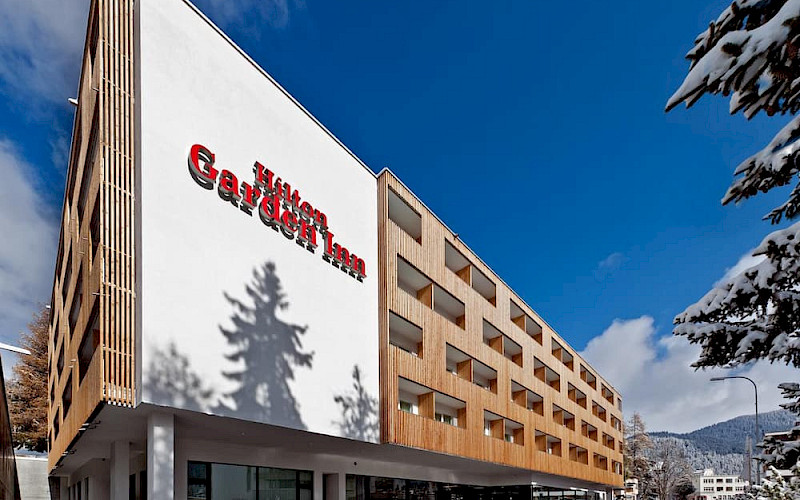 Midden in het bruisende centrum van Davos vind je Hilton Garden Inn, een modern 4‑sterrenhotel waar comfort en een toplocatie samenkomen. De skibus stopt op slechts 50 meter afstand, waardoor je binnen no‑time op de pistes van Davos Klosters Mountains staat. Binnen heb je alles wat je nodig hebt: een sauna om bij te komen, een restaurant voor je dagelijkse portie Zwitserse gerechten (met opties voor dieetwensen) en een gezellige bar met open haard waar je de dag perfect afsluit. Ook handig: er is een fitnessruimte voor als je na het skiën nog wat energie over hebt.