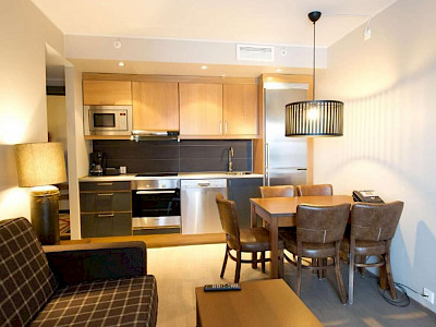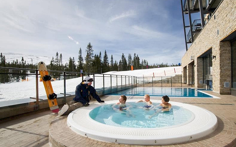 Ski‑in/ski‑out wordt het niet veel beter dan dit: Skistar Lodge Trysil ligt direct aan de piste op 802 meter hoogte, waardoor je skiënd de deur uit gaat en binnen 100 meter bij de eerste lift staat. Dit 4‑sterrenhotel biedt naast hotelkamers ook ruime appartementen in Noorse stijl met twee slaapkamers, een open keuken en een balkon met waanzinnig uitzicht over het berglandschap. Na een dag op de latten kun je terecht in de Kulpen Spa met een verwarmd binnenzwembad, vier sauna's en twee buiten jacuzzi's waar je heerlijk ontspant met het winterlandschap voor je neus, en voor het eten heb je de keuze uit drie restaurants waaronder een Italiaans restaurant en Restaurant Stabben voor lunch of diner.